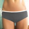 Kristen Reversible Boyleg Solid White, Color: White reverses to Solid Charoal. Adjustable bottoms with hidden elastic around legs and unique keyhole waistband is flattering and adjustable. Mid-rise with full hip and rear coverage.