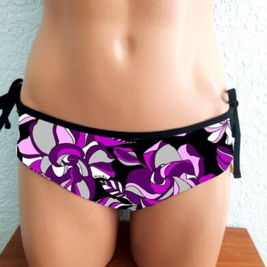 Alina Reversible Bottom He’e Nalu Ivory. Reverses to Solid Black, Full Rear coverage, with hidden elastic around the legs for comfort and it won’t cut in to cheeks. Drawstring waistband can be tightened for a secure fit without muffin-top. A Perfect surf bikini bottom or for other vigorous activity if you want good bikini bottom coverage.