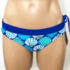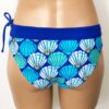 Alina Reversible Bottom Sunrise Shell Azure. Reverses to Solid Cobalt Blue. Full Rear coverage, with hidden elastic around the legs for comfort and it won’t cut in to cheeks. Drawstring waistband can be tightened for a secure fit without muffin-top. A Perfect surf bikini bottom or for other vigorous activity if you want good bikini bottom coverage.