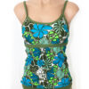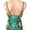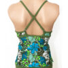Cathy Tankini Monarch Olive. Monarch Print Olive with Olive Trim. The same fit as the Summer Tankini except we have added subtle gathers in the center front bodice for an easier fit. Also, wider under bust elastic for extra support. Bust is lined and lightly padded. (the cups are sewn to the lining so they don’t scrunch up on you). Straps can be worn crossed, with adjustable hooks. See sizing below, waist measurement is natural waist. If you prefer it to fit looser, you can go up a size and cross the straps.