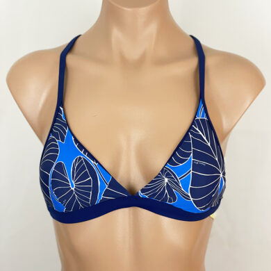 Colleen Long Sleeved One Piece Lo’i Kalo Indigo. Made of Recycled Nylon/Spandex. Full hip and rear coverage.