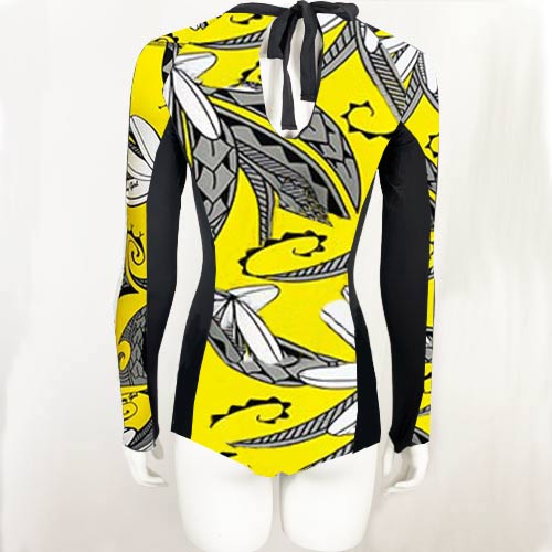 Colleen Long Sleeved One Piece, Print: Tiare Nui, Color: Yellow. Features: