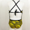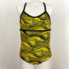 Girls One Piece He’e Nalu Gold, with Black trim. Sport top with adjustable cross back straps that tie, open scoop back. Full coverage in bust, hip, and rear. The sizes indicate the approximate age, and we have increased sizing in our new collection so it runs true to size. For example 1T fits an average 1 year old, size 10 fits an average 10 year old.