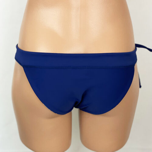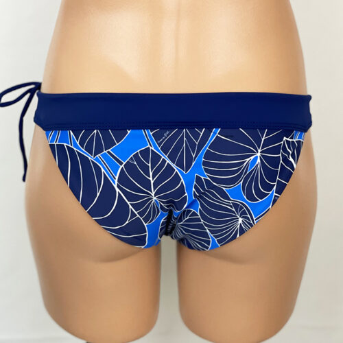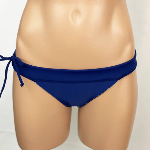 Heather Reversible Bottom Kalo Indigo, reverses to Navy. Drawstring in waistband, hidden elastic around legs. Low-rise bottom with moderate rear coverage. Our new prints are made of a high quality Recycled Nylon/Spandex, wet printed for color vibrancy and saturation, and spandex made to withstand chlorine. Made in the USA.