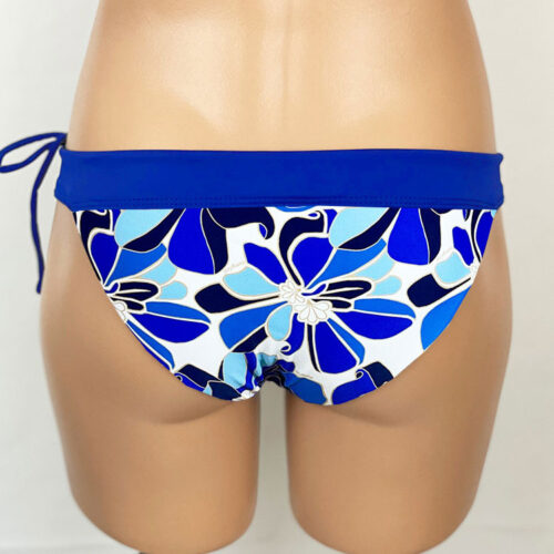 Heather Reversible Bottom Naupaka Royal Blue, reverses to Royal Blue. Adjustable drawstring waistband, hidden elastic around legs. Low-rise bottom with moderate rear coverage. Our new prints are made of a high quality Recycled Nylon/Spandex. Made in the USA of imported fabrics.