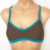 Jaimie Reversible Sport Solid Teal. Reverses to Solid Brown. Straps cross and tie in back. Lightly padded (padding sewn to an inner lining so it doesn‚’t scrunch up).