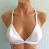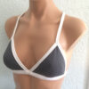 Jules Reversible Triangle Sport Top White reverses to Charcoal. Straps cross and tie in back. Lightly padded sewn to an inner lining so it won’t scrunch up.