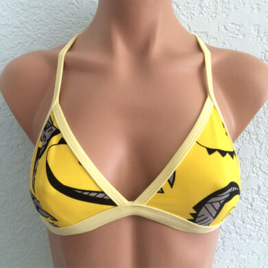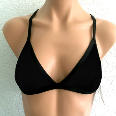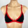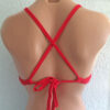 Jules Reversible Triangle Sport Top Solid Red. Solid Red reverses to Solid Red with red straps. Straps cross and tie in back. Lightly padded sewn to an inner lining so it won’t scrunch up. (NEW! NON-PADDED VARIATION Please select from drop down list)
