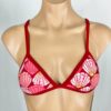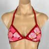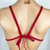NEW! Kanani Reversible Triangle Top Sunrise Shell Wine, reverses to Solid Wine. Fixed basic triangle coverage. 3/8″ elastic binding trim ties at neck and back. Straps can also be worn over the shoulders by threading it through the special loops at the ends of the neck straps.