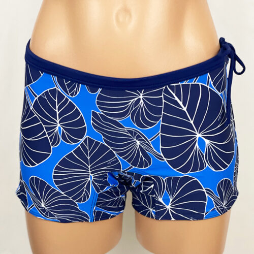 Kelly Reversible Shorts Kalo Indigo, Reverses to Navy. 3.5 inch inseam, flattering waistband with drawstring. Perfect for water sports (paddling, surfing, swimming), as well as land sports (running, yoga, working out). These shorts are stretchy and comfortable, and many customers can fit a size smaller in the Kelly Shorts, than their usual size Honey Girl bottoms.