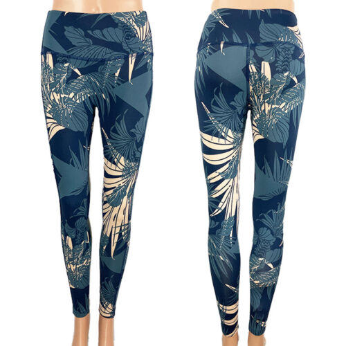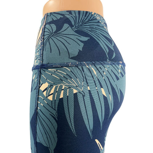 SALE! Steel Blue Print Koa Ankle Legging. You can fold over waist to adjust waist to lowrise. Solid Steel Blue on the inside waistband. No center seam in front. Perfect for yoga, workouts, and all water sports. XS-3XL available. Made in the USA of imported fabric.