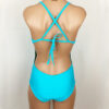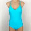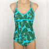 Rachel Reversible One Piece Kalo Cactus, reverses to Light Turquoise. Full hip and seat coverage, sport top with light pads sewn into an inner lining so it doesn’t scrunch up. Hidden elastic around legs and back for comfort. Our new prints are made of a high quality Recycled Nylon/Spandex, wet printed for color vibrancy and saturation, and spandex made to withstand chlorine. Made in the USA.