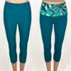 SALE! Solid Aqua with Gardenia Rebecca Hi-Rise Capri. Fold over waist to adjust for hi-rise or lowrise. Gardenia Aqua Print on the inside waistband. Dries quickly. No center seam in front. Comfy sizing, not too tight. If you use for the ocean, we suggest going DOWN a size. Perfect for yoga, workouts, and all water sports. Made in the USA of imported fabric. XS & XXS available.