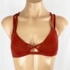 Reversible Teya Strappy Top Solid Rust, reverses to Petal. No padding. Criss-cross over the shoulder straps, and under bust straps that wrap and connect to the outer bust (keeps you from falling out the sides), and criss -ross center bust (keeps you from popping out the middle). Perfect for yoga and surfing. The Reversible Teya Strappy Top provides a little more coverage than the original Teya Strappy Top, with slightly wider elastic straps 3/8″.