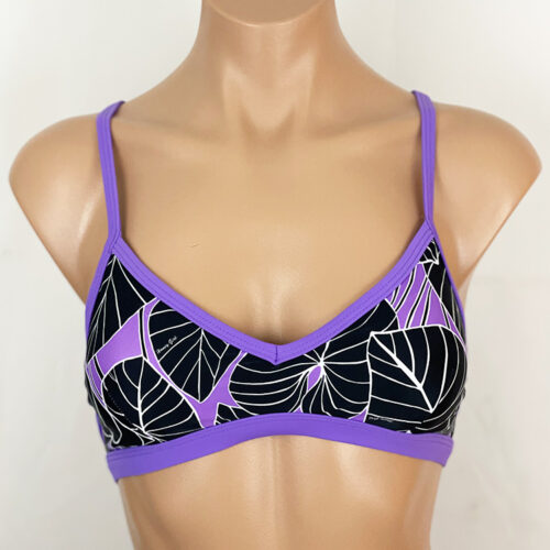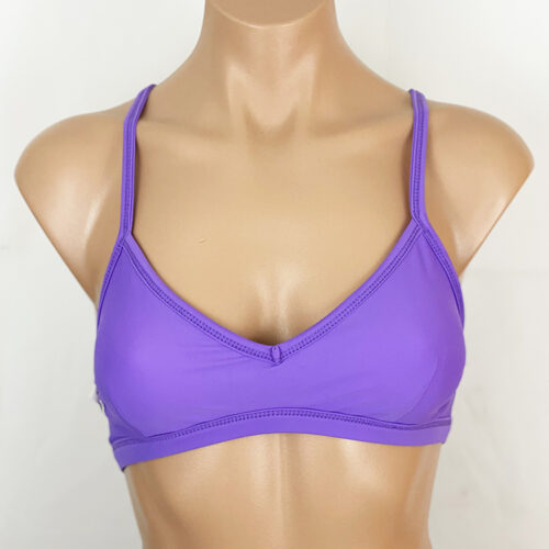 Sasha Reversible Sport Top Kalo Lilac, reverses to Solid Lilac. The Sasha Top is pull-over style, there are no ties. The straps can be worn as a “V” back or an “H” Back. Super comfortable and supportive, perfect for any activity (yoga, surfing, paddling). Our new prints are made of a high quality Recycled Nylon/Spandex, wet printed for color vibrancy and saturation, and spandex made to withstand chlorine. All our suits are sewn in the USA.