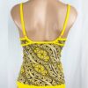 Summer Tankini Kapa Yellow with Mustard Yellow Print. Bust is lined and lightly padded. (the cups are sewn to the lining so they don’t scrunch up on you). Straps can be worn crossed, with adjustable hooks. Fitted so it won’t get baggy in the water, longer length. Perfect for work outs, too.