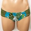 Tabbi Surf Bottom Monarch Print, Color: Olive. “Tabbi” Surf Bottom – 5 elastic hip straps on each hip keep this bikini bottom in place surfing and swimming. It is made to be snug for water activity such as Body Surfing. It’s brazil cut, kind of skimpy, but not super skimpy. We recommend to go UP a size or two if you don’t wear it for surfing or body surfing.