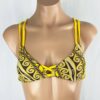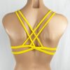 Teya Strappy Triangle Top Kapa Yellow. Pull over style, criss-cross over the shoulder straps, and under bust straps that wrap and connect to the outer bust (keeps you from falling out the sides), and criss -ross center bust (keeps you from popping out the middle). It’s made extra snug for surfing. It has REMOVABLE pads, which we suggest to take out for surfing, and you can put them back in if you want to wear this top as a bra under your favorite open back top or dress.