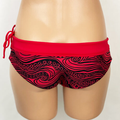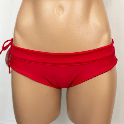 Tiare Reversible Lowrise Bottom He’e Lava. Reverses to Red. Low-rise fit with wide waistband for more hip coverage, moderate rear coverage. Drawstring in the waistband holds this bottom in place.
