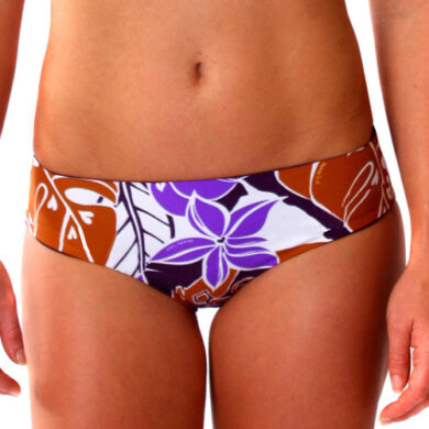 Tiare Reversible Lowrise Bottom Solid Teal Brown. Solid Teal reverses to Solid Brown with Teal waistband. Low-rise fit with wide waistband for more hip coverage, moderate rear coverage. Drawstring in the waistband holds this bottom in place. Sizing: XS=0-1, S=1-3, M=3-4, L=5-7, XL=7-9, XXL=9-11.