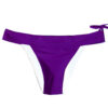 Traci Reversible Brazil Bottom Solid Purple, reverses to Solid White. Lowrise bottoms with skimpy rear coverage. Drawstring in the waistband holds this bottom in place even in big surf.